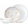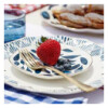 Refresh your table setting with our sweet and simple Blue Bay collection, featuring textile-inspired patterns and organic shapes accented with a thin gold line. This 12-piece decorated dinnerware set includes four dinner plates in an ikat pattern, four dessert plates, and all-purpose bowls in a mix of stripes, dots, leaves, and ikats. The porcelain collection is both dishwasher and microwave safe, making it durable and convenient for everyday use. Each piece of this exquisite set is crafted with precision and care, ensuring its quality and longevity. With its unique and versatile design, the Blue Bay collection is perfect for a variety of dining occasions, adding a touch of elegance and sophistication to your table setting. Enjoy your meals in style with this beautiful dinnerware set.