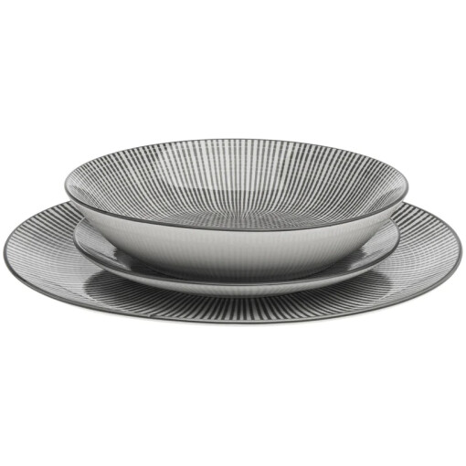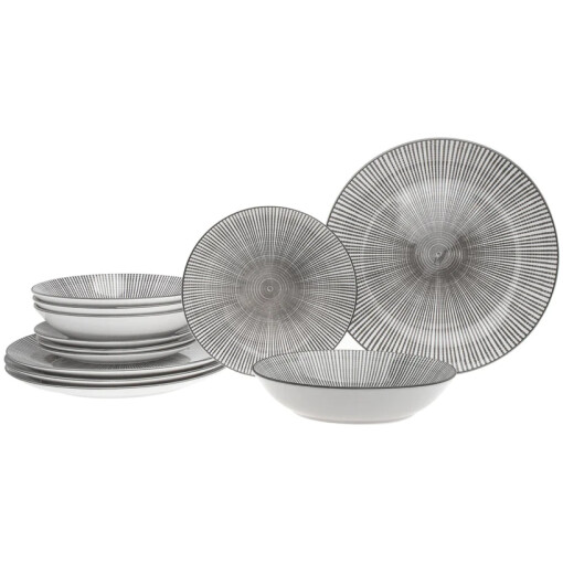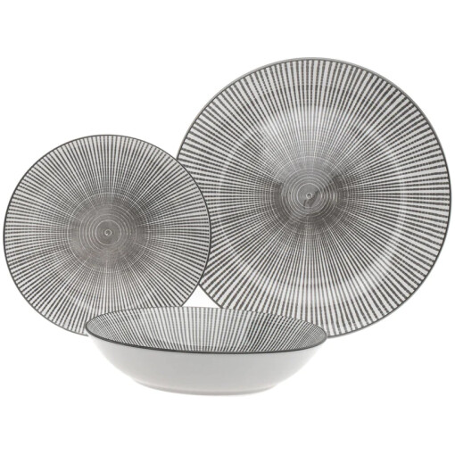 Elevate your dining experience with the Laura Porcelain 12 Piece Dinnerware Set, crafted to add a unique starburst design to your everyday meals. Soar to new heights of table settings and make every meal an adventure with this versatile set that includes service for 4. The semi-handmade construction of this set ensures its uniqueness and quality, while the imported design adds a touch of sophistication. Made from porcelain, this set boasts a beautiful combination of grey and white, adding a modern and sleek look to your table setting. The set includes 4 dinner plates, 4 salad plates, and 4 bowls, all designed with precise measurements and in different sizes to suit your dining needs. The set is dishwasher and microwave safe, making it perfect for everyday use. Dine in style and make your meals unforgettable with the Laura Porcelain 12 Piece Dinnerware Set.
