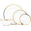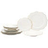 Indulge in an elegant dining experience with the Nola Bone China Platinum Rim Dinnerware Set. Crafted from the finest bone china, this exquisite set features a wide metallic band and is inspired by the works of renowned artist Nola. The beautiful combination of white and silver creates a contemporary and sophisticated look that is sure to impress your guests. With service for four, this dinnerware set is perfect for hosting intimate gatherings or formal occasions. The semi-handmade construction adds a unique touch, while the imported design ensures its quality and durability. This dinnerware set is a perfect choice for anyone who values both functionality and style and is looking to make a statement at their next dinner party.